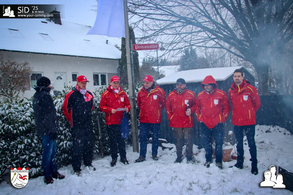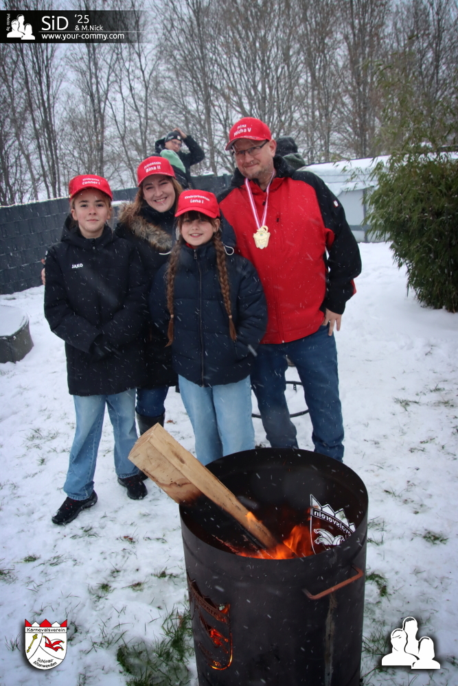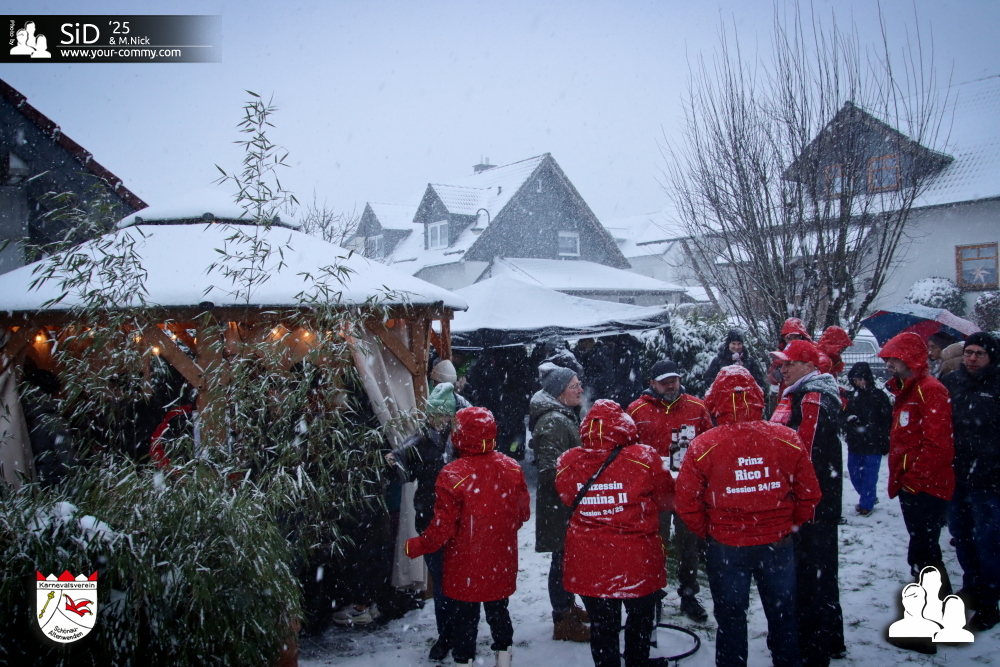 Trotz Schnee und Kälte war die Stimmung bestens. Bei Glühwein, Bier und Grillwurst im Brötchen wurde gemeinsam angestoßen, gelacht und gefeiert. Denn spätestens mit dem Aufstellen des Prinzenschildes ist klar: Die Winterpause ist vorbei. Jetzt beginnt die heiße Phase der Session – mit allem, was dazugehört.